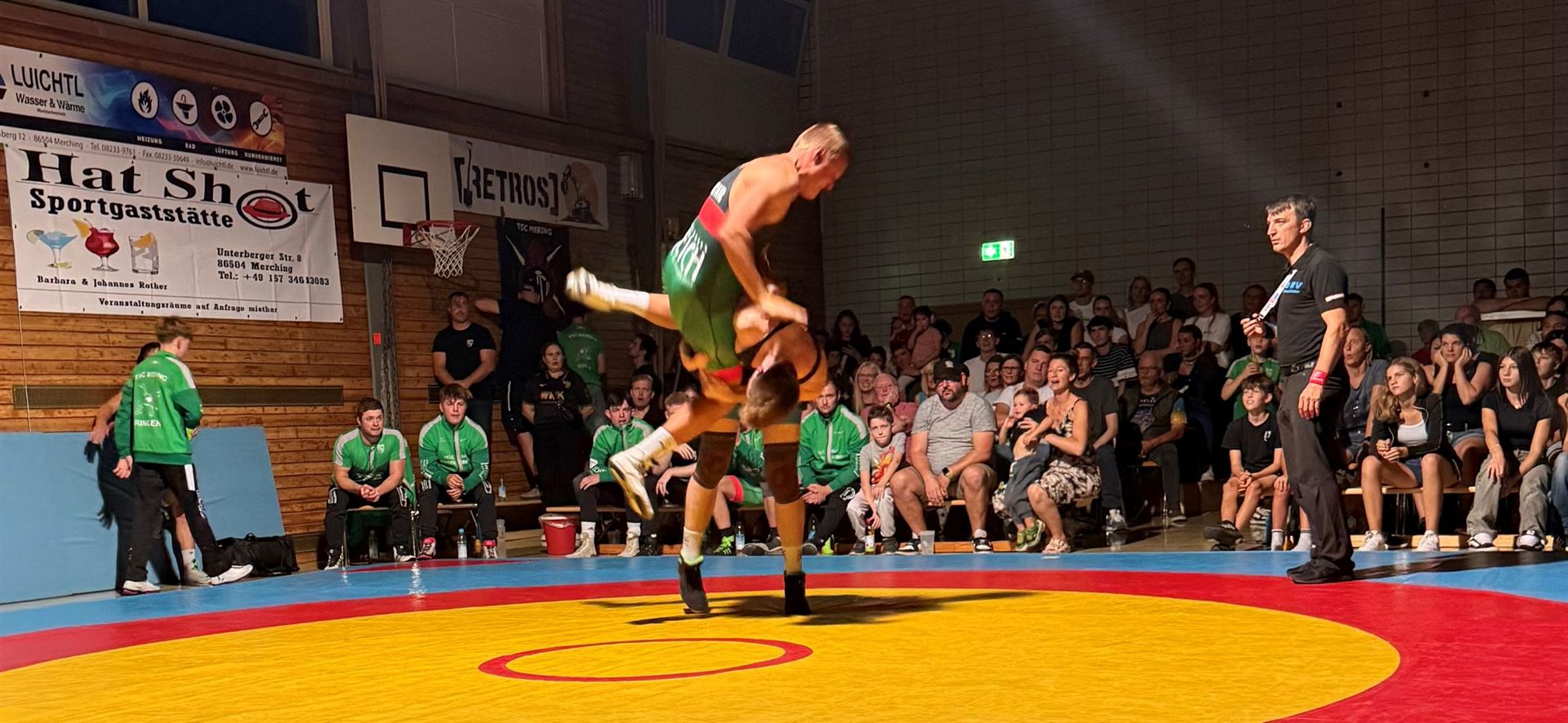 Auch Zelimhan Movsurov überzeugte mit sehenswerten Angriffen, bei einem verbissenen Kampf. Beim Stand von 2:16 schulterte er Niklas Kroiß und baute die Führung des TVU aus.