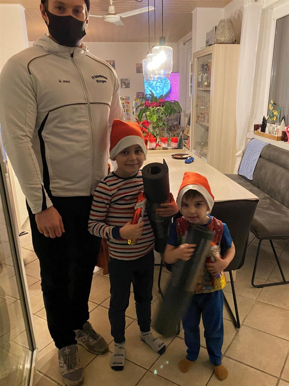 So machte sich das Trainerteam am vergangenen Sonntag auf den Weg, um allen Kindern daheim ein kleines Präsent zu übergeben. Von Dürrbach über Veitshöchheim, Waldbrunn, den Heuchelhof, Rottendorf und die Zellerau waren die Betreuer, in getrennten Autos, mehrere Stunden unterwegs, um den Nachwuchsringern eine Isomatte und eine Nikolausmütze für kommende Sport-Challenges zu übergeben. Ein Schokoladen-Nikolaus war natürlich auch Bestandteil des kleinen Päckchens, das von unserem Förderverein gesponsert wurde!