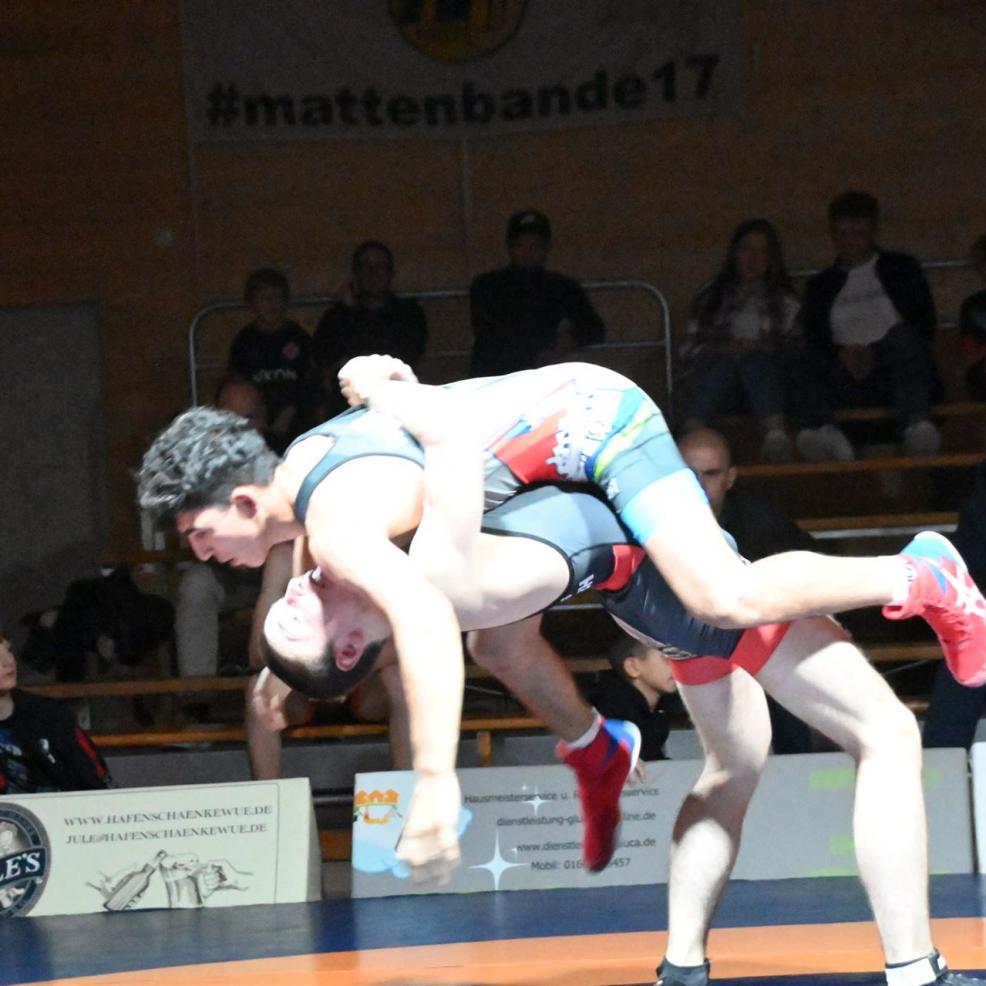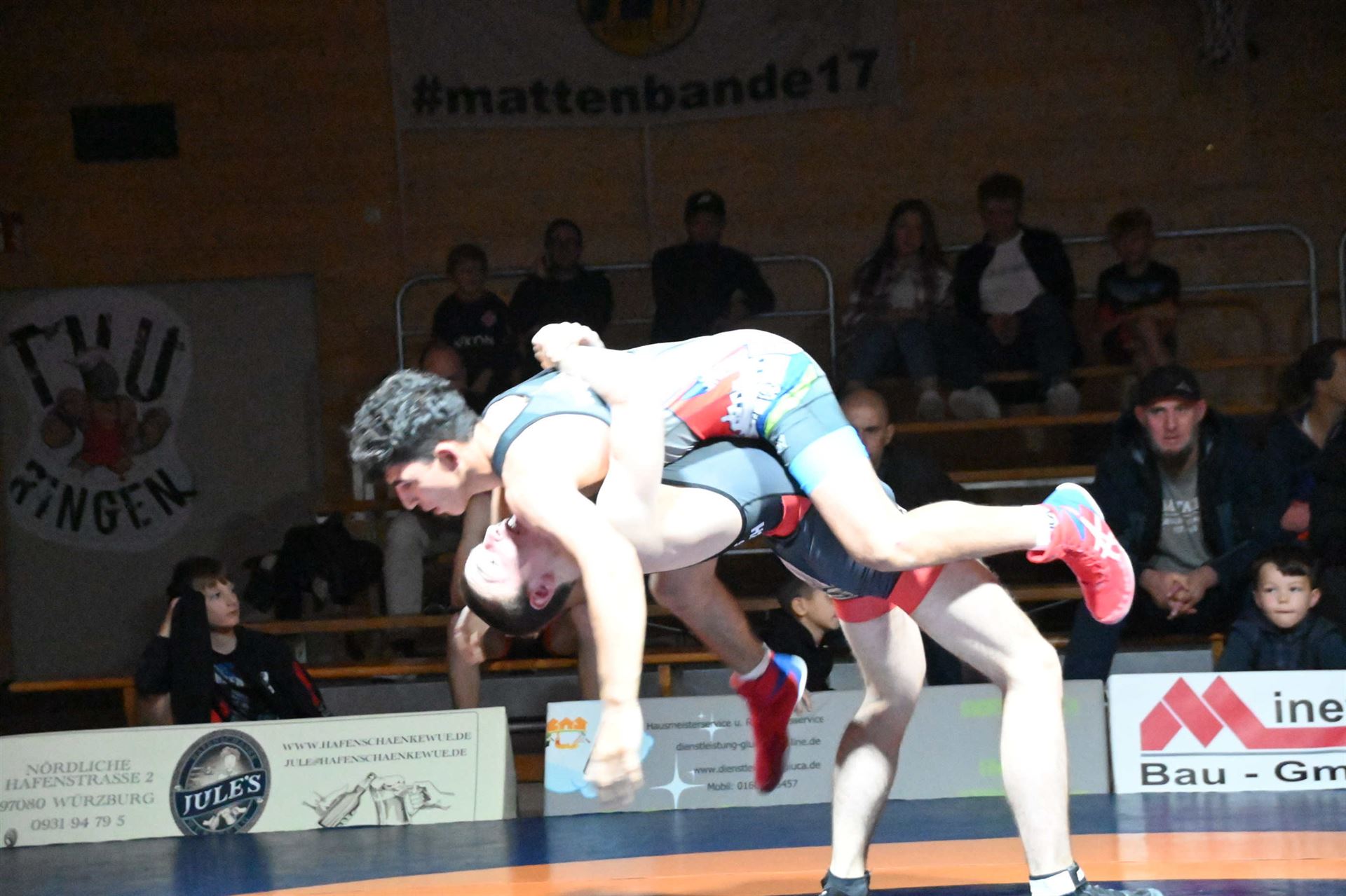 Für Burgebrach kämpfte Richard Rutkowsky in der Gewichtsklasse bis 46kg und traf im freien Stil auf unseren Khamzat Khunaev, sowie auf Lennox Adam im Greco-Kampf. Während Khamzat leider eine Schulterniederlage einstecken musste, konnte Lennox sein Duell technisch überlegen gewinnen.